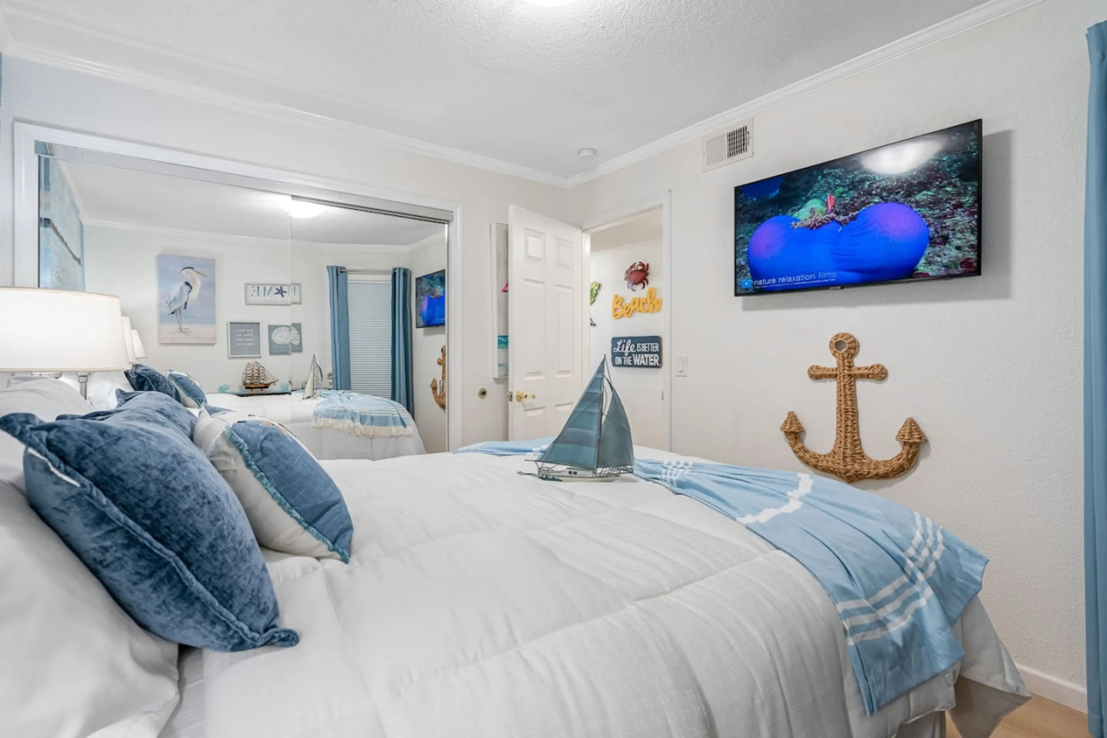Positive: Amazing view of the beach and water. Good location- walkable to several restaurants. Very comfortable bed.