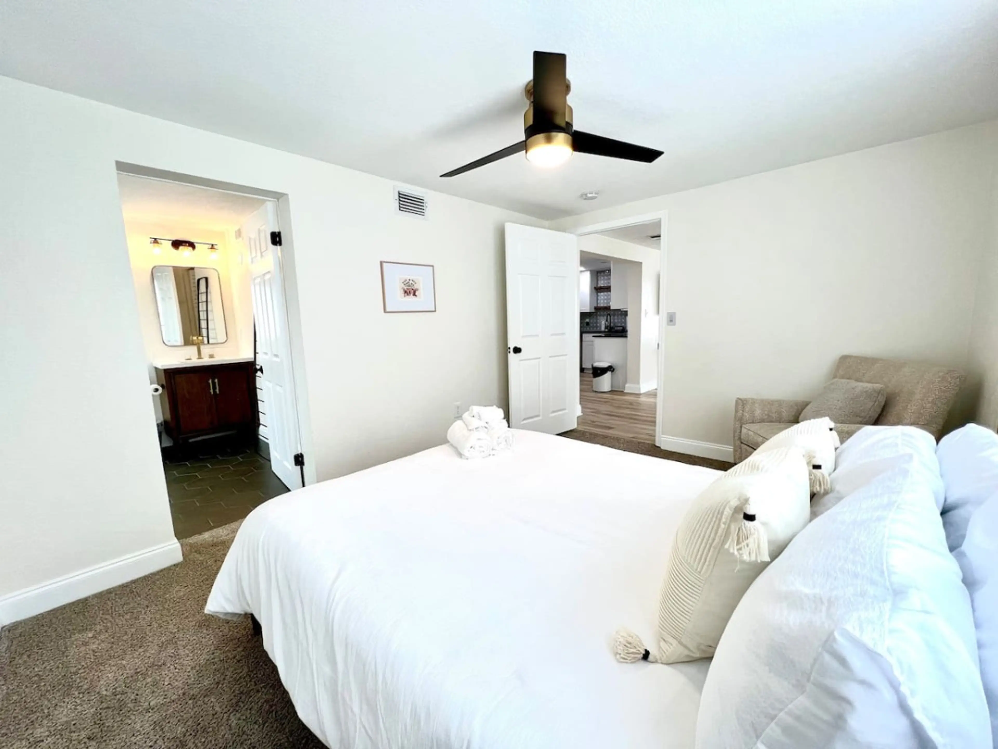 Escape to a perfectly decorated home in the heart of Largo, FL. Perfect for vacationers seeking to explore St. Pete, Tampa, and Clearwater. Experience the epitome of sophistication with a stunning remodeled interior, showcasing a blend of mid-century and boho chic style. Enjoy the best of Florid...